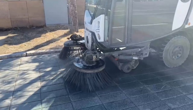 Параллельно проезжую часть очищает вакуумная подметально-уборочная машина Johnston VT 650, которая предназначена для очистки дорог в весенне-летний период. В настоящее время уборка смета с городских улиц ведется в усиленном режиме. Работы выполняются и днем, и ночью ручным и механизированным способом. Основной объем работ выполняется в ночное время, чтобы не препятствовать дорожному движению днем.