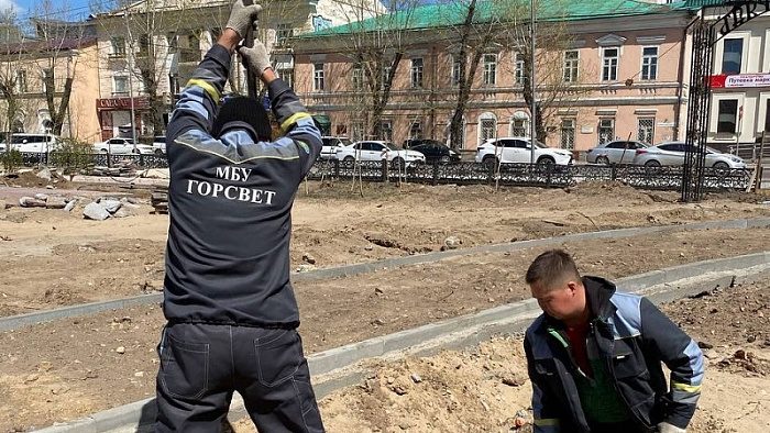 Сотрудники Горсвета отмечают, что сложность работы заключается в том, что на данном участке каменистый грунт, сообщает Восток-Телеинформ.