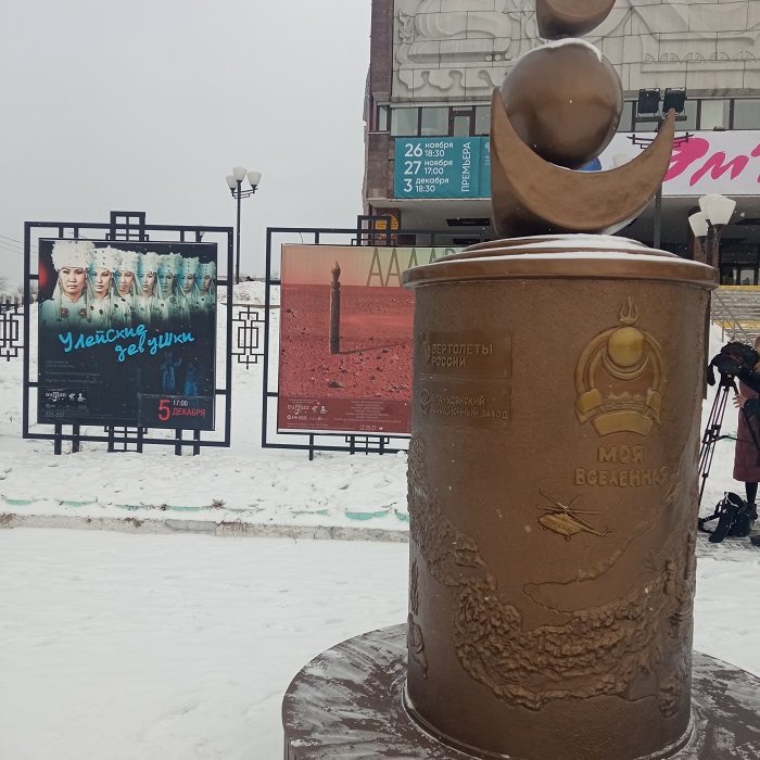 В Улан-Удэ стало на один памятник больше: новая скульптура украсила площадь перед Буряад театром. Арт-обьект создан художником-скульптором Анатолием Шоболовым по инициативе Ассоциации творческих работников Республики Бурятия. Спонсором создания объекта современного искусства выступили холдинг «Вертолеты России» и «Улан-Удэнский Авиационный завод», сообщает пресс-служба театра.