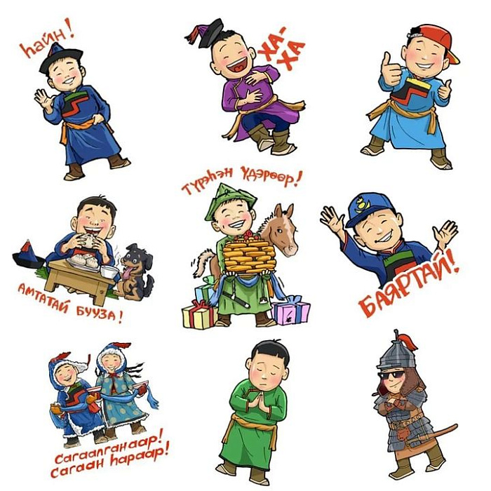 Известный в Бурятии художник Жаргал Очиров совместно со своей командой Lizartsketch разработали стикерпак «Амгалан» для популярного мессенджера и теперь жители Бурятии смогут выражать свои эмоции в сообщениях с помощью забавных бурятских мальчуганов в национальной одежде с подписями на родном языке.