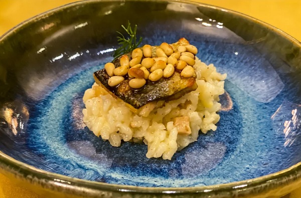 «После хушуур принесли снова крохотное блюдо — кусочек муксуна на подушке из ризотто с белыми грибами. Рыбку они закарамелизировали и посыпали сверху кедровыми орехами», - продолжил автор.