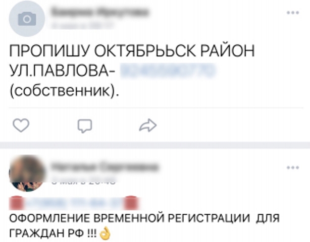 Управление по вопросам миграции МВД по РБ напоминает, что данное противоправное деяние квалифицируется Уголовным кодексом РФ по ст. 322.2 (Фиктивная регистрация гражданина Российской Федерации по месту пребывания или по месту жительства в жилом помещении в Российской Федерации и фиктивная регистрация иностранного гражданина или лица без гражданства по месту жительства в жилом помещении в Российской Федерации).