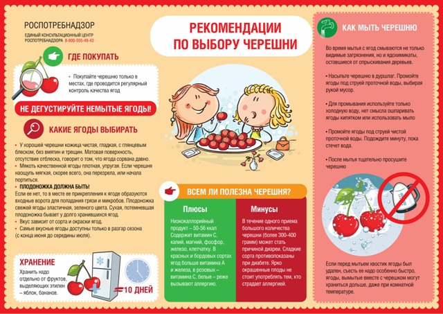 Специалисты Центра гигиены и эпидемиологии Бурятии составили памятку о том, как выбрать черешню, пишет Восток-Телеинформ. Первый совет от экспертов – это правильное место покупки ягоды. Покупать черешню можно только в местах, где проводится регулярный контроль качества. Практически на каждом крупном рынке функционирует лаборатория, занимающаяся таким контролем. Выбирая ягоды, покупатель имеет право требовать информацию о месте и условиях произрастания черешни у продавца, а документы на продукт должны быть предоставлены по первому требованию. Покупать ягоды на стихийных рынках или «с рук» лучше не стоит.