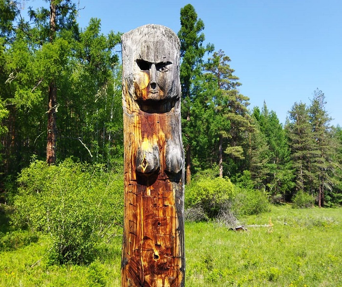 Неизвестный тотем в виде женской фигуры нашли в заповеднике Бурятии. Как рассказал инспектор Алтачейского заказника Сергей Красиков, тотем (Оджибве дудем) был обнаружен на территории заказника при обследовании территории и засолки новых солонцов.