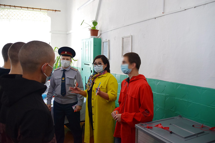 Вместе с начальником регионального пенитенциарного ведомства Сергеем Кудрявцевым они поздравили граждан, впервые реализующих право голоса.