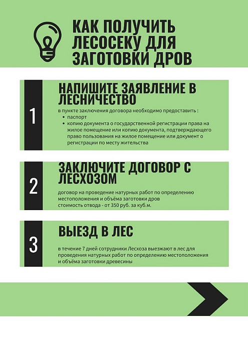 Далее в лесничество следует передать копии паспорта с пропиской, копию документа о государственной регистрации права на жилое помещение; копию документа, подтверждающего право пользования гражданина на жилое помещение. В случае отсутствия лесосек в ближайшем лесничестве, можно обратиться в другие лесничества для выделения лесных участков.