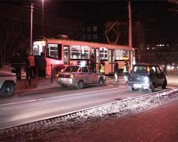 Хоть и не пятница, но все же 13-е... Вечером выходного дня в районе остановки «Химчистка» образовался транспортный коллапс. Но в пробке стояли не только автомобили, но и трамваи.