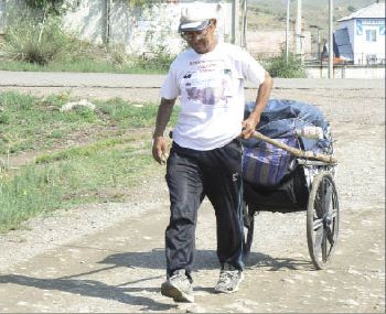 Для него это дань памяти отцу, который тоже воевал. С собой у Петра Наумова лишь тележка, которую он переоборудовал из инвалидной коляски. В ней лежит вся его скромная поклажа весом в 68 кг: палатка, сменная одежда, питьевая вода, документы и дневник путешественника. Неожиданно для него Бурятия стала гостеприимным приютом на два дня. Здесь совершенно незнакомые люди поддержали пожилого путешественника в трудный момент, дали возможность отдохнуть и помогли собраться в дальнейший путь.
